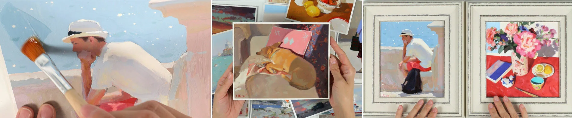 Ideally, if you are going to varnish your gouache paintings and frame them without glass, it’s a good idea to paint them on pre-made boards. Even better if your board is standard size, so that when the painting is finished you only need to varnish it and frame it in a standard size pre-made frame that can be purchased at any art store.
