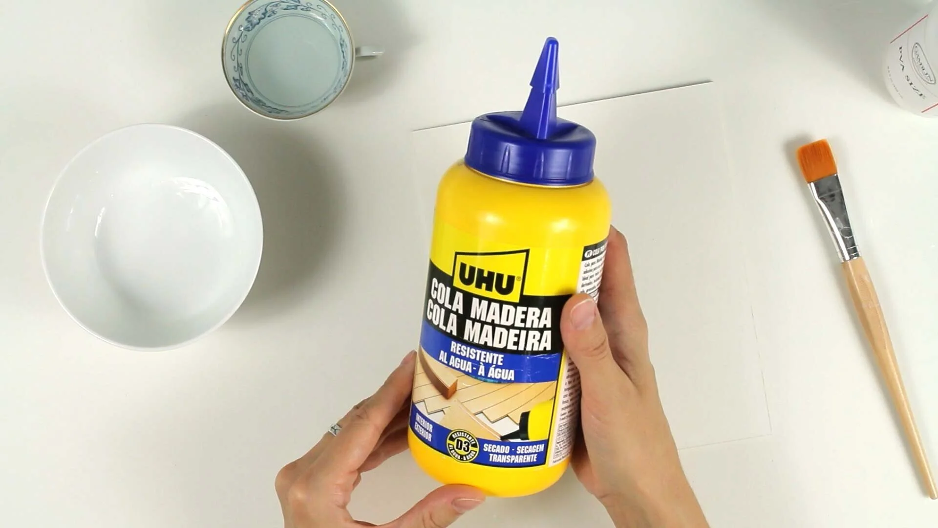 It’s very important that the PVA / wood glue you use for this is water resistant. I use most often use this water resistant wood glue from UHU: