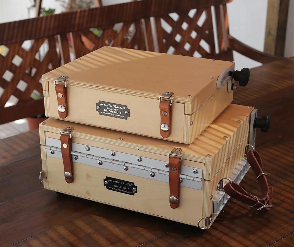 The pochade box is the most important part of my plein air setup. It is made by a US company called Guerrilla Painter. Actually, I use two of these boxes: 9x12” and 8x10”. I usually prefer the bigger one as it can hold everything I need for painting and it’s better balanced because of the deeper and heavier bottom part, but the small one is very light and compact, and it can be easily fit into any backpack.