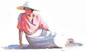 By the way, I do not recommend placing your paper in direct sunlight while painting outdoors because the extremely bright surface of the paper won't let you judge the colors accurately. You will have to compensate for the brightness of the sunlight without even realizing it and will end up by mixing darker colors than you actually need. The day this photo was taken was quite windy, so I couldn't set up my umbrella and there also was no shade on the pier, so I didn't have a choice and had to set up my easel in sunlight.