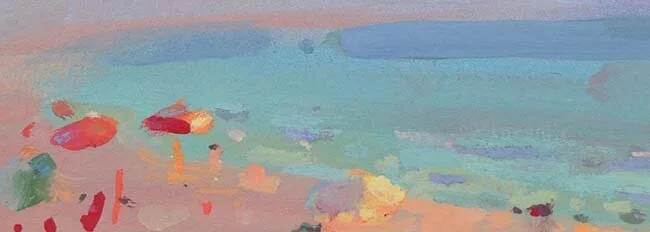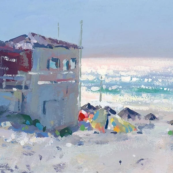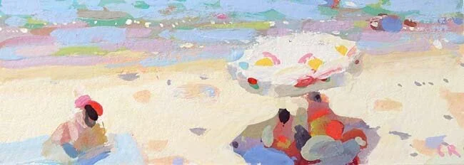 I painted the shadow area under this umbrella using mostly transparent pigments. Everything illuminated by the sun was painted with opaque colors.