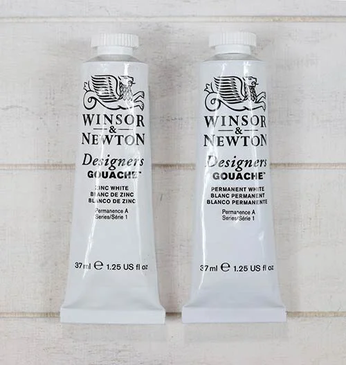 I use two whites with gouache: Zinc White, also known as Chinese White as a mixing white and Titanium White, called Permanent White in gouache for highlights and really light areas. Permanent White can affect the permanence of some pigments, therefore it shouldn't be used as a mixing white.