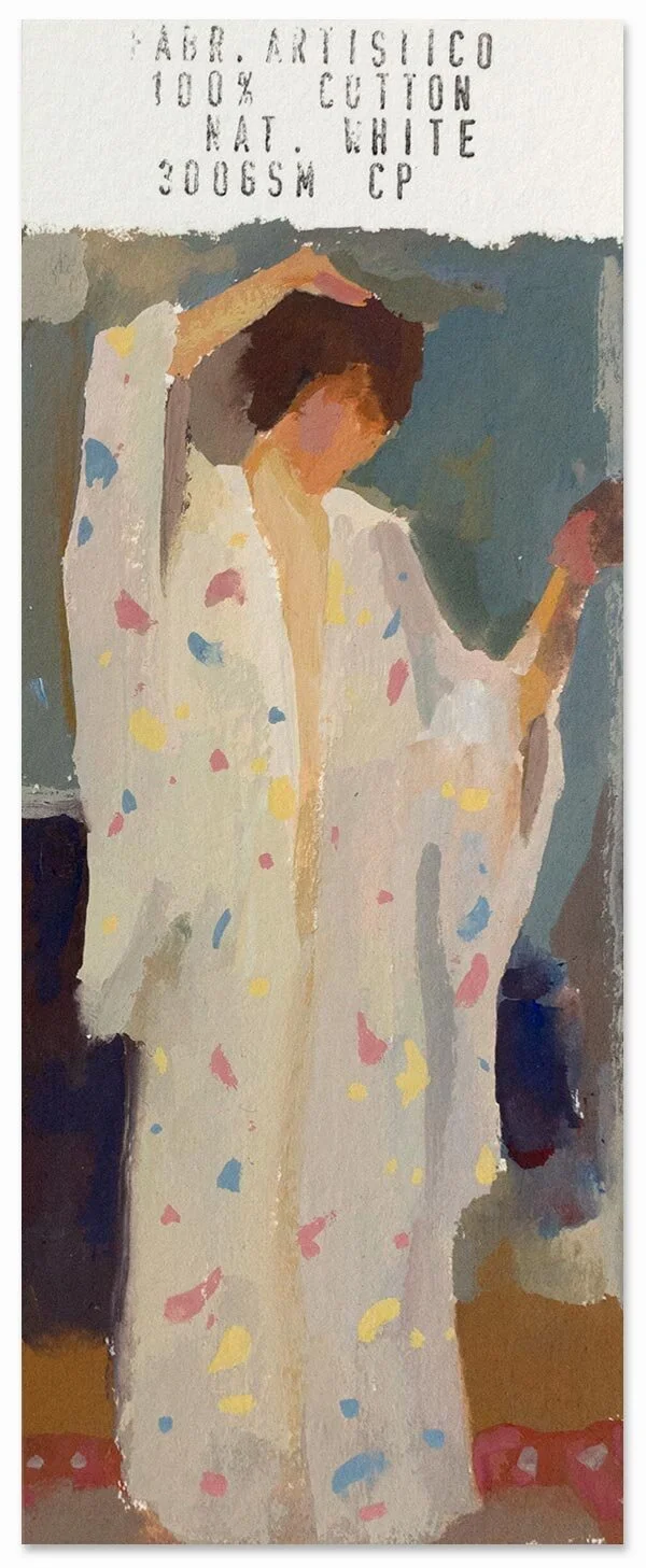 cotton natural white 300gsm cold press paper has always been one my favorite papers for painting with gouache, as well as its hot pressed version. So, it wasn’t new to me. I love everything about this paper - the color, the texture, the degree of absorption. The gouache colors look fantastic on it. Gouache spreads easier on hot pressed paper, but the texture of this cold pressed paper is really nice.