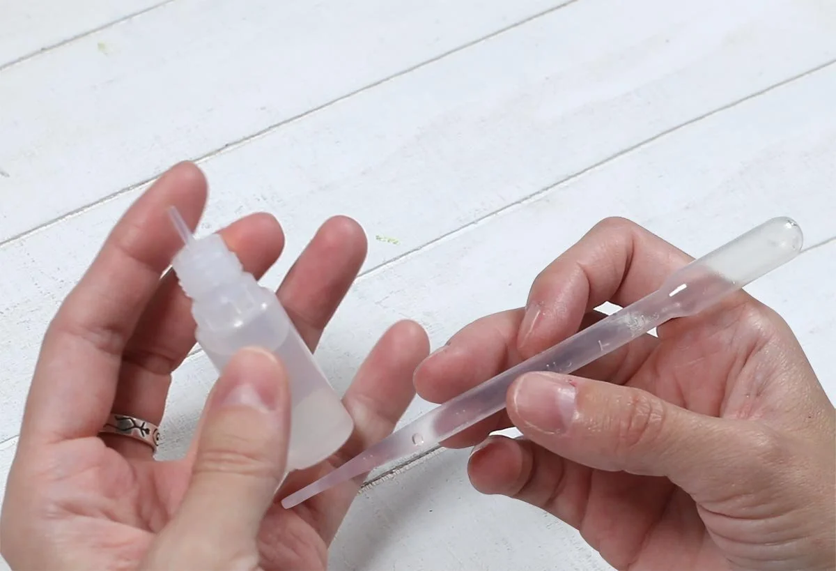To add the medium to my whites I use these twist-top dropper bottles. They are great because they allow you to squeeze liquids out in small amounts and they also prevent the liquid inside them from evaporating. It’s very easy to twist them open and close them.