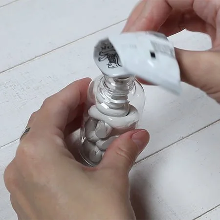I take a tube of Zinc White and squeeze all the paint into the bottle.