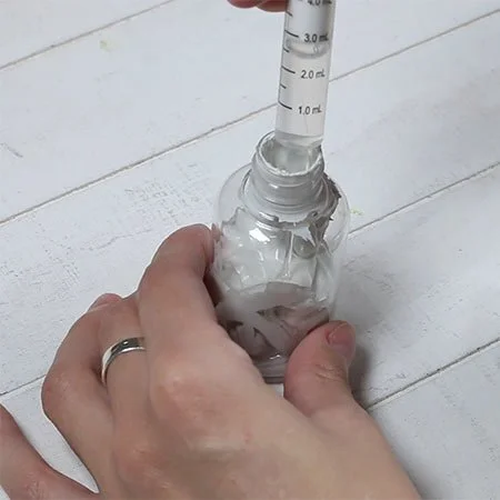 Now, I’ll add the medium in the proportion 1 part medium to 4 parts paint, using a syringe. Since I have 36 ml of paint, I need to add 9 ml of the medium.