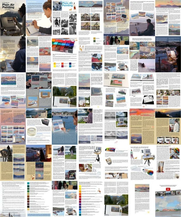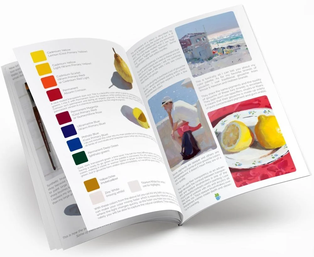 The guide is packed with dozens of images and visuals, so even if you have never painted on location before you might enjoy just browsing through the colorful pages of this e-book.