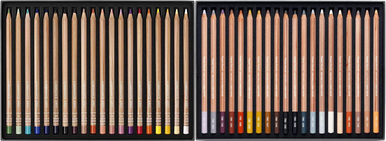 The pencils I use when working with oil pastels are the wax-based Caran d'Ache Luminance Pencils, but any other pencil of a similar nature can also be used