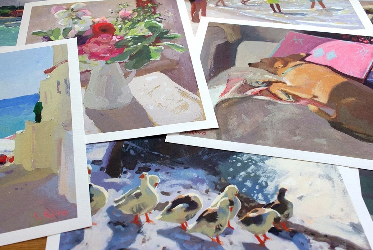 If you want to decorate your home with my paintings without investing in the originals now you can order high-quality fine art prints on paper or canvas! You can have your favourite paintings printed on sizes that best suit your living space. I offer a wide selection of prints that will fill your home with color and light, creating a cheerful ambience. You can choose between summerly floral still lifes, vacation-inspiring beach and village scenes, and peaceful figures and animals.