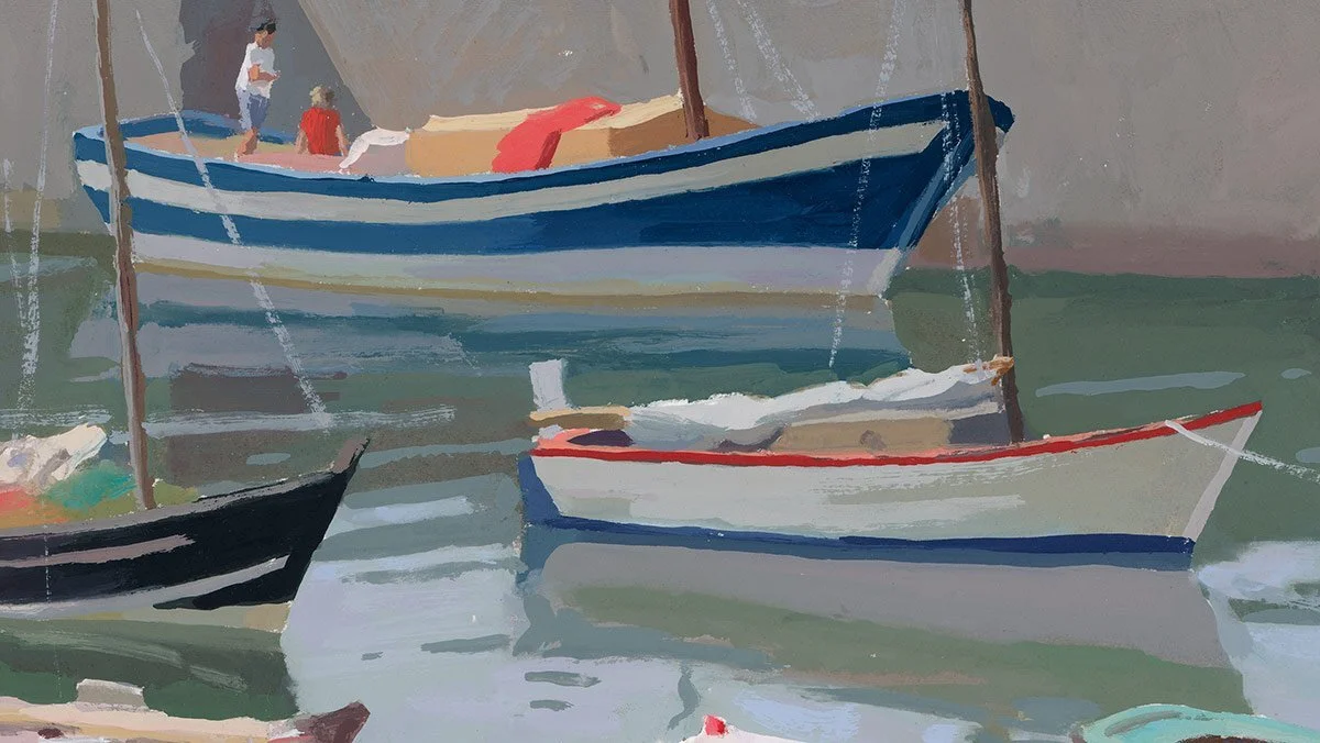 Painting the boats was enjoyable. I patiently painted one boat after another, making sure to create subtle color variations within every shadow and placing warm and cool colors of the same value side by side to add vibrancy to the painting and make it look more realistic without adding extra detail.