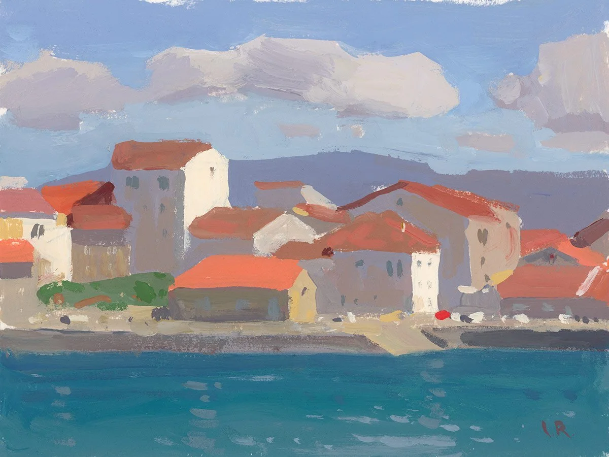 When I started painting, the clouds over the town had already begun to fade, so I decided to capture them first, before anything else. I asked nature to hold those clouds for me for just a few more minutes.